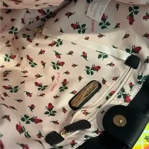 Tags- white, black, gold tone, anchors, lined, pink, red roses, shoulder bag