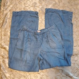 These women's wide leg pants are made of 100% Lyocell which is known for its softness. There are 2 fake pockets in the back & 2 real pockets in front. Made for a loose flow fit. There is elastic in the waistband for an adjustable fit. Very comfy Size XSmall