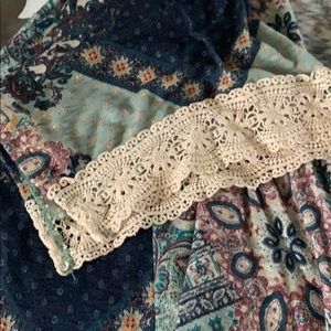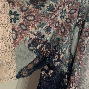 Paisley design layering lightweight cardigan. Crochet details on sleeves. Great addition to your closet