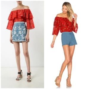In excellent condition. White lace top with criss cross detail on shoulders.