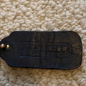 All black leather COACH bag. With a shoulder strap, front pocket, and inside pocket.