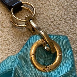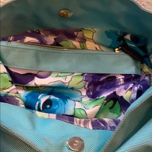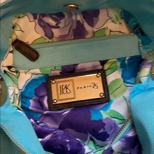 Authentic JPK PARIS 75 bag. Very good condition. Black leather detachable straps. Purple and blue floral print interior.