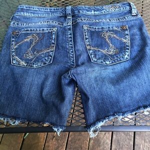 Silver Brand cut off jean shorts. Eden jean model as you can see. In excellent condition. VERY light distressing done on the tops of the pockets and on belt line on the back. These shorts could be cut shorter if you wished or rolled up for a different look. Size 30, true to size. Open to offers!