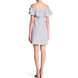 Eliza J Blue Stripe Seersucker off Shoulder dress