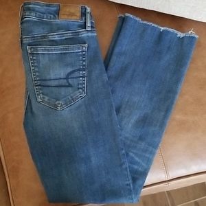 EUC- American Eagle Outfitters button fly jeans with frayed edges. Size 2 Regular. No stains or holes.