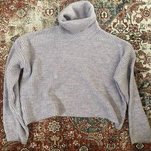 Light lavender slightly cropped turtleneck sweater. Worn many times, but very very good quality. Willing to negotiate at a reasonable price! It’s a very warm and cute sweater!
