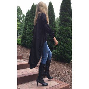 Double elastic balloon detail sleeves. Great with jeans, leggings, skirts etc. This can be dressed up for an event or pair with distressed jeans to make it more casual. Figure flattering on many shapes and sizes.