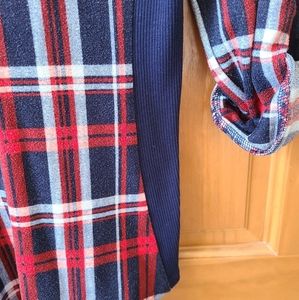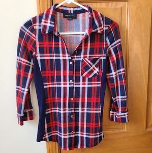 Very cute red, white, and blue plaid shirt