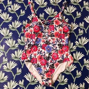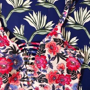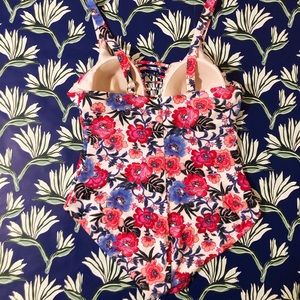 Super cute floral one piece with cutout detail in front. NWT + liner still on!
