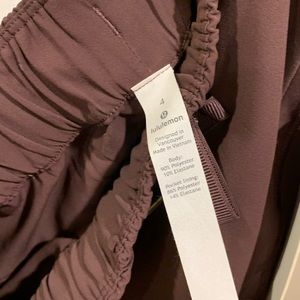 With a sophisticated look and deceivingly low-maintenance fabric, this skirt is perfect for weekdays and work trips. Travel Woven fabric is wrinkle-free, machine-washable, and quick-drying with a sleek drape. Front pockets to store your essentials. Drawcord helps you customize your fit. Medium rise. (First pic from lululemon website)