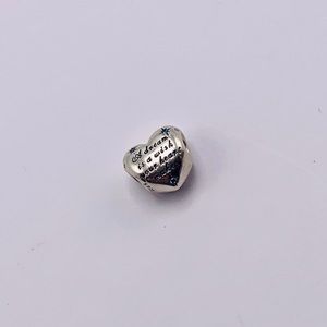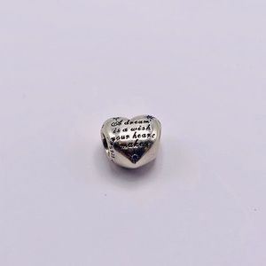 We all need a reminder that dreams can come true. This charm is shaped as a heart that's been engraved with the words "A dream is a wish your heart makes." The sterling silver charm for Pandora Moments bracelets is inspired by Disney's Cinderella and detailed with pastel blue cubic zirconia for subtle sparkle. Wear or share the sentimental style to channel its meaning, or gift it to someone special to show them you know them.