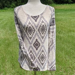 Ginger G cream grey Aztec print long sleeve L
