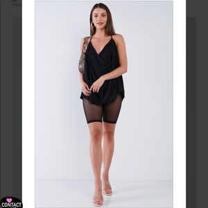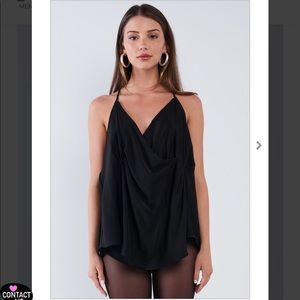 Black Satin Loose Fit Sleeveless Deep Plunge Double Wrap V-Neck Top