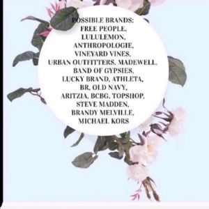 Tons of Anthropologie, Miss Me, Lululemon, Athleta, Maeve, Free People, Urban Outfitters, Brandy Melville, Paige & more! Buy up before it goes!