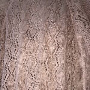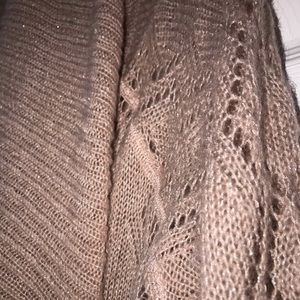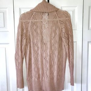 Women’s Apt. 9 brand cowl neck sweater, size large. Lightweight and sheer, with diamond cutout pattern. Pinkish/beige color with interwoven shimmery thread. Beautiful sweater! Only worn once. Smoke free home.