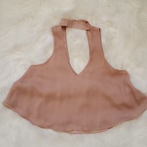 The Casey Collar Top by Show Me Your Mumu was made for a night out. Featured in a lightweight polyester blend fabric. Features include deep v neck with choker collar, and cropped length. This will be your new favorite go-to top. Mauve with gold threading