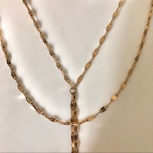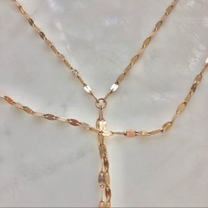 Gold Tone Double Chain Drop Lariat Necklace