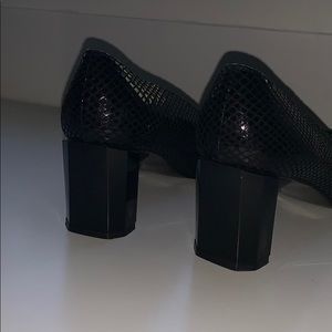 Obsessed with these heels but they’re a little small for me😭 size 5 1/2 squat toe heels in great condition! Some wear underneath and on inside but outside of the shoe looks great!!