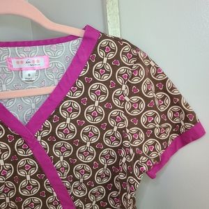 Koi♡Front tie v-neck heart butterfly scrub top