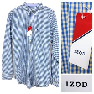 NWT- IZOD Blue & Yellow Gingham Check Men's Shirt