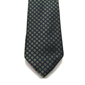 Navy Blue Field with Olive Green Medallions and Light Blue Pin Dots