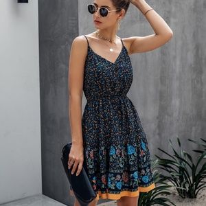 Boho Hippie Gypsy Floral Midi DressBoho Hippie Gypsy Floral Midi Dress