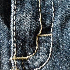 Pre-owned. Decorative stitching on fly coming lose. see photo