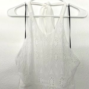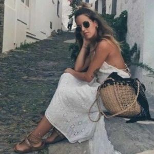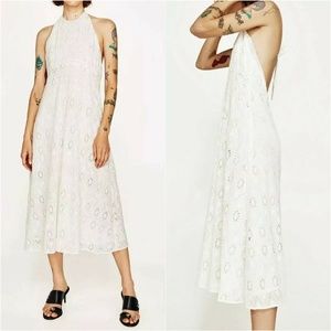 Zara Halter Neck Midi Dress Womens Size Medium White Floral Eyelet Embroidered. Great condition. Back zipper. Inside lining. Ties around neck. Great for a beach wedding, bride, bridal party!
