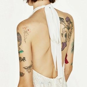 Zara White Embroidered Halter Neck Midi Dress