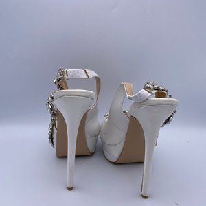 FSJ White Satin Slingback Bridal Heels Rhinestone