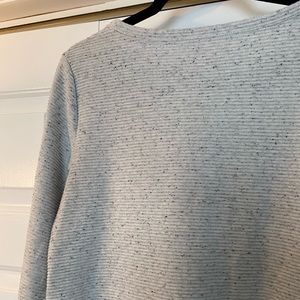Light grey speckled with white ruffle trim on bottom. True to size. Lightly worn. Will be freshly steamed before shipping. Offers and bundling encouraged!