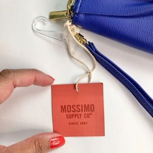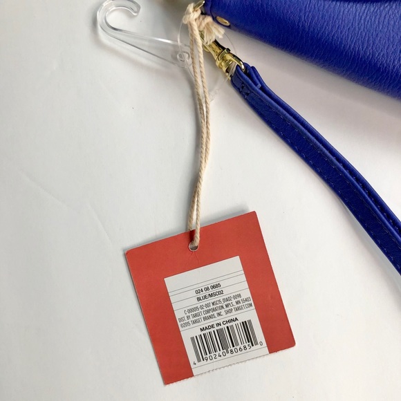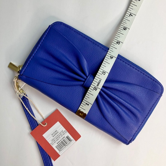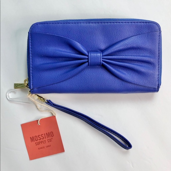 Mossimo Wallet Clutch. Super cute wristlet. Brand new with tags, NWT. Mint condition, no damage. Color: Blue, Bow design, removeable wrist strap, inside pocket, inside pocket for cash, drivers license slot, 4 credit card slots. Fits an iPhone 8 Plus and similar sized phones.