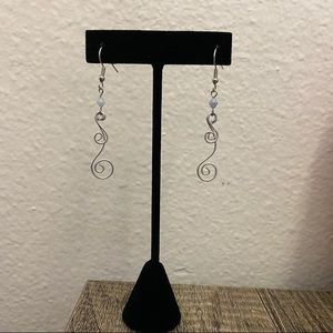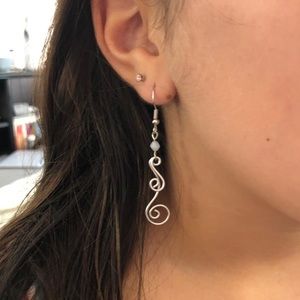 Dangling earrings. Sliver color with purple bead.