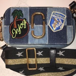 -multicolor denim patchwork, adjustable Crossbody guitar strap