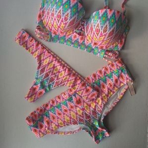 VS Midi Beach Bandeau Cheeky Thong Bikini~Ikat