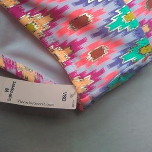 Victoria's Secret Midi beach Longline Bandeau Bikini top~Size 34D~New without tag. & VS The Sexy Little Thong Bikini Bottom~Size Small~New without tag. Along with the VS Cheeky Swim Short~Size Medium~can be worn over the thong as a cover up if preferred, works great! The Bandeau has multi way straps, or wear strapless to get the most of the 🌞sun with the thong! All in White Ground Ikat Foil~Gorgeous with a Tan!