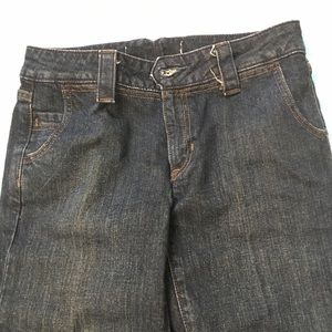 Matches crop sweaters, flower houses; cowboy boots, and sneakers. Dark wash rinse. size small. Worn once.