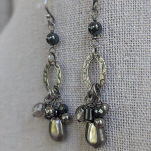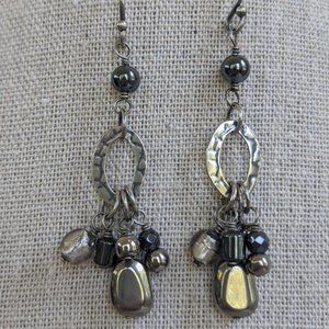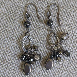 Silpada Sterling Silver + Hematite Earrings W1963. Silver-foiled glass hematite and glass beads dangle of a hammered oval sterling silver accent, on french wires. I also have the matching necklace and bracelet. Bundle for discount!
