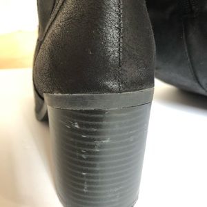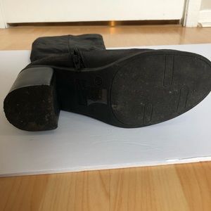 Love these boots so much, but unfortunately they are a smidge too narrow for my feet. They have only been worn a handful of times, as you can see on the bottom. They still have the sizing sticker, with just some scuffs on the heel. I did not clean the bottoms so you can see they have hardly been worn. They do not slip on your leg at all when wearing.