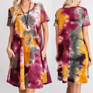 Bohemian berry tie dye waffle dress