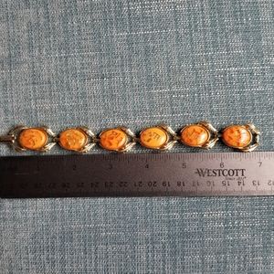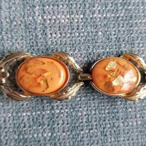 Collectable signed Coro bracelet. Orange and gold confetti lucite. Minimal wear on back.