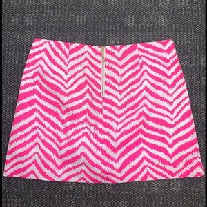 Really pretty zebra print pink and white skort. The skort has two small slits on both sides and a gold zipper on the back with a bamboo design zip pull. In excellent, like new condition and only worn once before sitting in my closet.