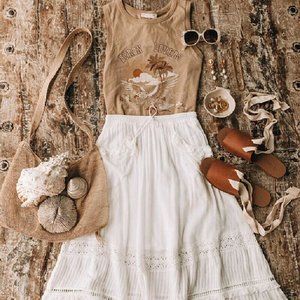 GORGEOUS New Bohemian White Lace Tassel Tie Maxi Skirt