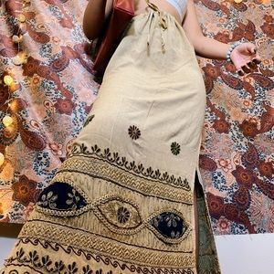 🦋 WORN ONCE, one size, adjustable waist, floor length embroidered, tassel bottomed, multi colored, snug fit bohemian skirt