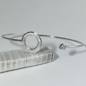 Mia Sarine Baguette and Round Cut Cubic Zirconia Open Circle Cuff Bangle Bracelet.