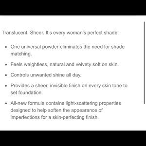 Provides a sheer, invisible finish on every skin tone to set foundation.