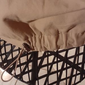 Utility jacket is khaki with 2 big pockets on each side the bottom has elastic straps to adjust it.i just wore it 1 time for an hr or so, it's in like new condition.