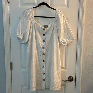 Beautifully detailed dress perfect for any semi formal event! It’s white and has very intricate details. Brand new and never been worn.