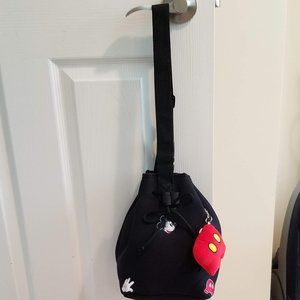 Black with mickey embroidery on bag and attached dangling mickey ornament