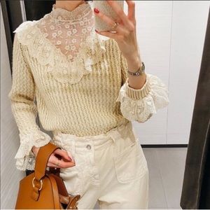 ZARA RUFFLE KNIT SWEATER